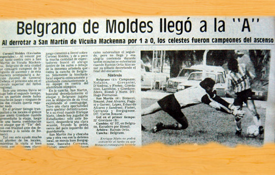 Un 28 de octubre de 1990 Belgrano de Coronel Moldes vencía a San Martín de Vicuña ...