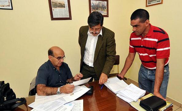 El ex delantero de Estudiantes, Martín Uranga, y el técnico Néstor Billalva observaron ...