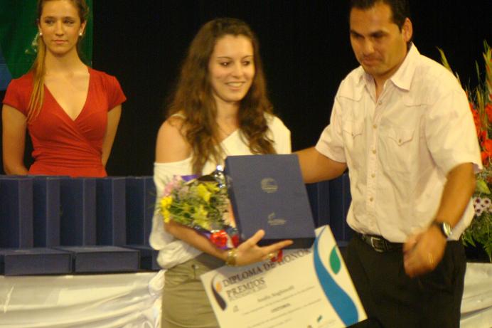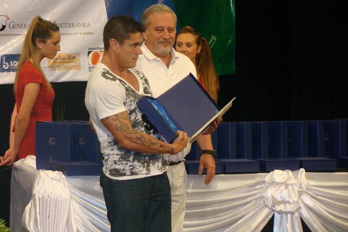 Jorge Alturria ganó en fútbol y José Mancinelli le entregó el premio.