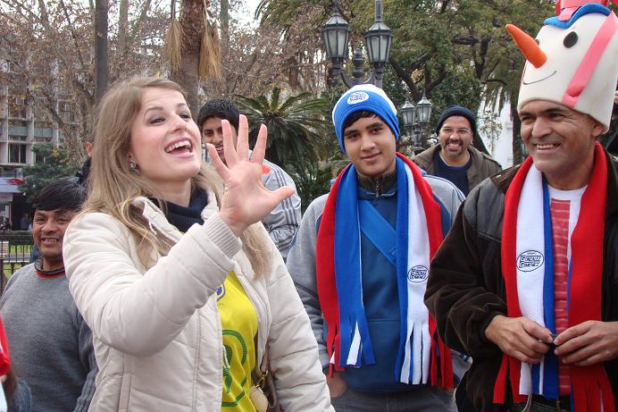 Las calles de la “docta” se vistieron de celeste y blanco en el festejo que organizó el ejecutivo municipal. Miles de personas en las calles formaron parte de la fiesta patria. Pero muy cerca de lugar del lugar de los festejos fueron personas de otros países los que protagonizaron su fiesta. Los hinchas paraguayos (con un gran número de personas) y los simpatizantes brasileños le impregnaron su impronta a Córdoba. A horas del partido que enfrentará a Brasil y Paraguay, por la segunda fecha del Grupo B, el “albirrojo” y la “verdeamarelha” coparon la ciudad capital de la provincia mediterránea.
