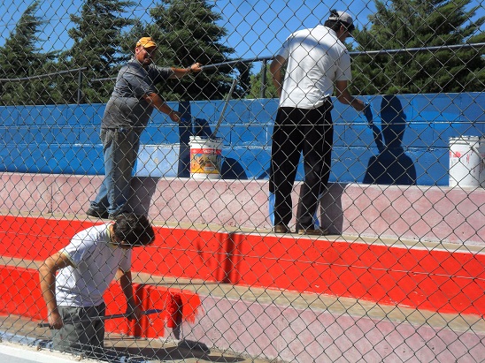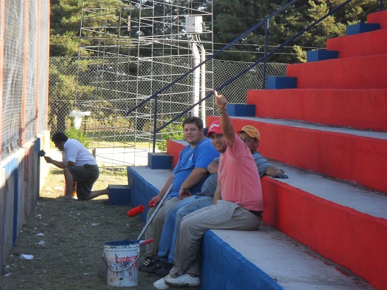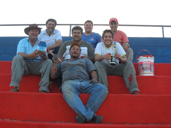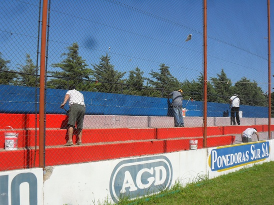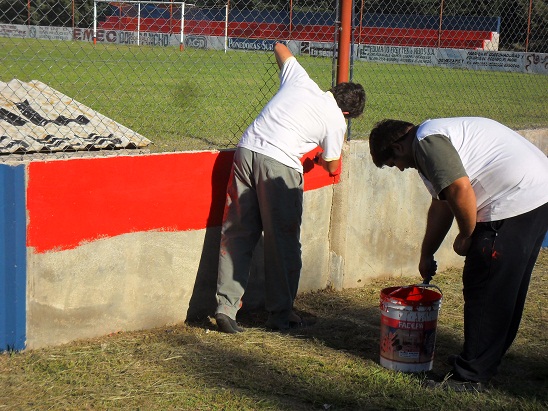 Se comenzó la tribuna este, ubicaba en la zona contigua a los vestuarios, luego la ubicada detrás del arco sur y posteriormente todo el sector oeste incluyendo la platea, además de haber pintado toda la base del cerco perimetral del reducto. Entre mucho rojo y azul, Horacio Costamagna, presidente de la Subcomisión de Fútbol, expresaba: “estamos laburando a full para cambiarle la cara a la cancha ya que desde su inauguración no había sido pintada y la verdad, nos parece que está quedando espectacular”. Cabe destacar que se pintó aproximadamente un 80% de total y el próximo sábado estarían dando el toque final a la obra.