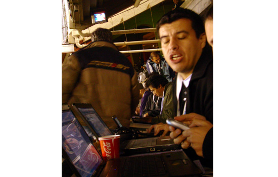 Dos periodistas ecuatorianos dicen sorprendidos: “se olvidaron de encender la luz”. En la zona de pupitres destinada a la prensa escrita apenas se distinguen las siluetas de los trabajadores que de a poco ocupan sus sectores. “Creo que no se olvidaron... simplemente no hay”, responde otro periodista mientras intenta conectar internet a su computadora (un desafío a la paciencia). Los televisores que se sitúan en lo alto de la platea Belgrano recién dan a luz cuando la selección ganaba dos a cero. La enorme pantalla de 10 por 5 metros y de tecnología Full Color LED (según reza la empresa SETUC) nunca pudo exhibir dichos atributos porque jamás se encendió. Regulación de energía, dijeron.