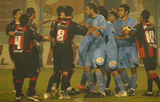 El “celeste” no mostró su mejor faceta en el primer tiempo de cuarenta minutos -sintió la ausencia de Sebastián Pérez en el medio campo- en donde la visita se impuso dos a cero con los tantos de Gabriel González y Pedro Mauricio Levato -de penal-. El equipo de Mattea careció de peso ofensivo debido a que no encontró creación en la zona media. Allí el “rojinegro” prevaleció -merced a la presión- y complicó a la defensa “celeste”.